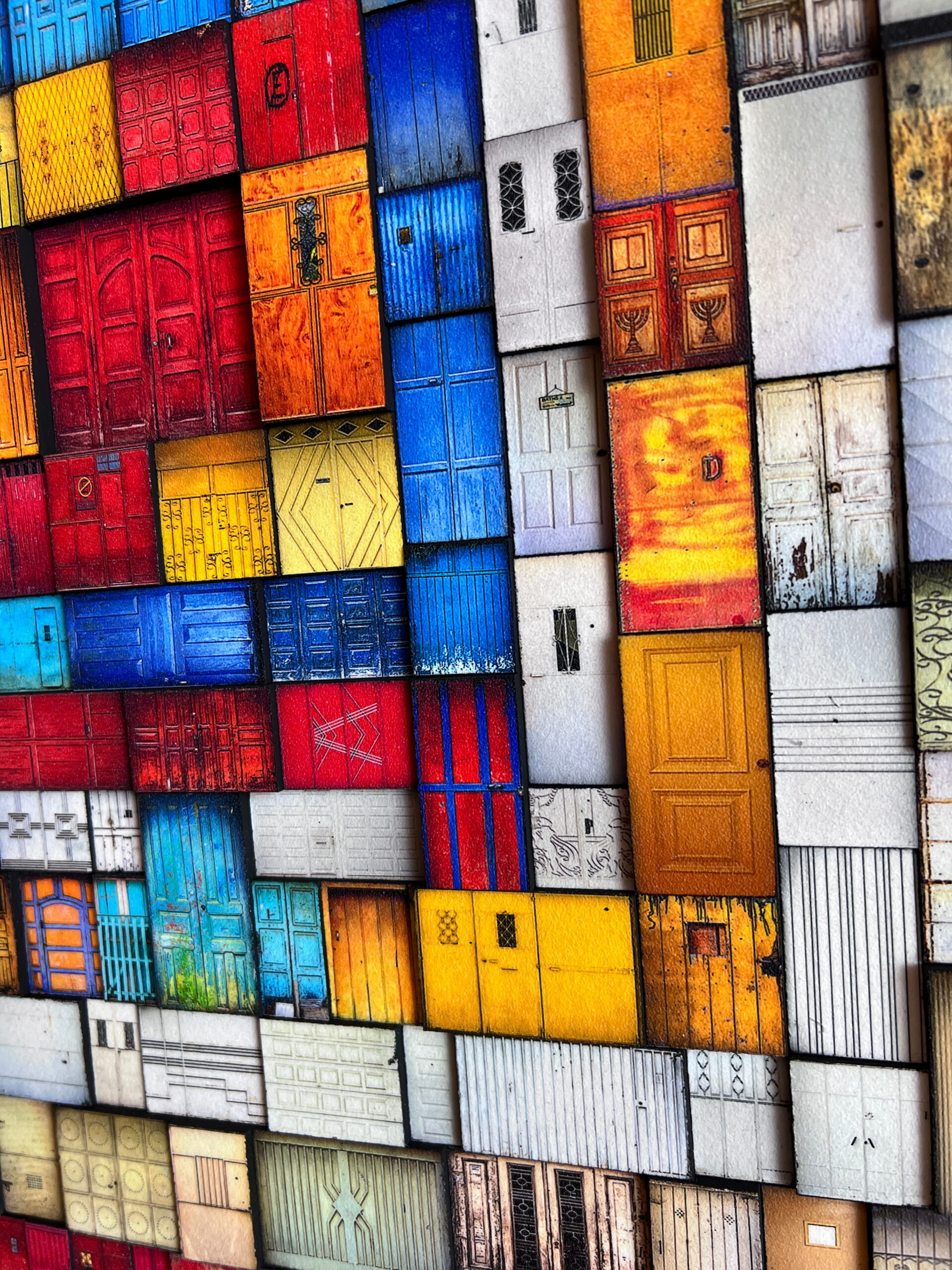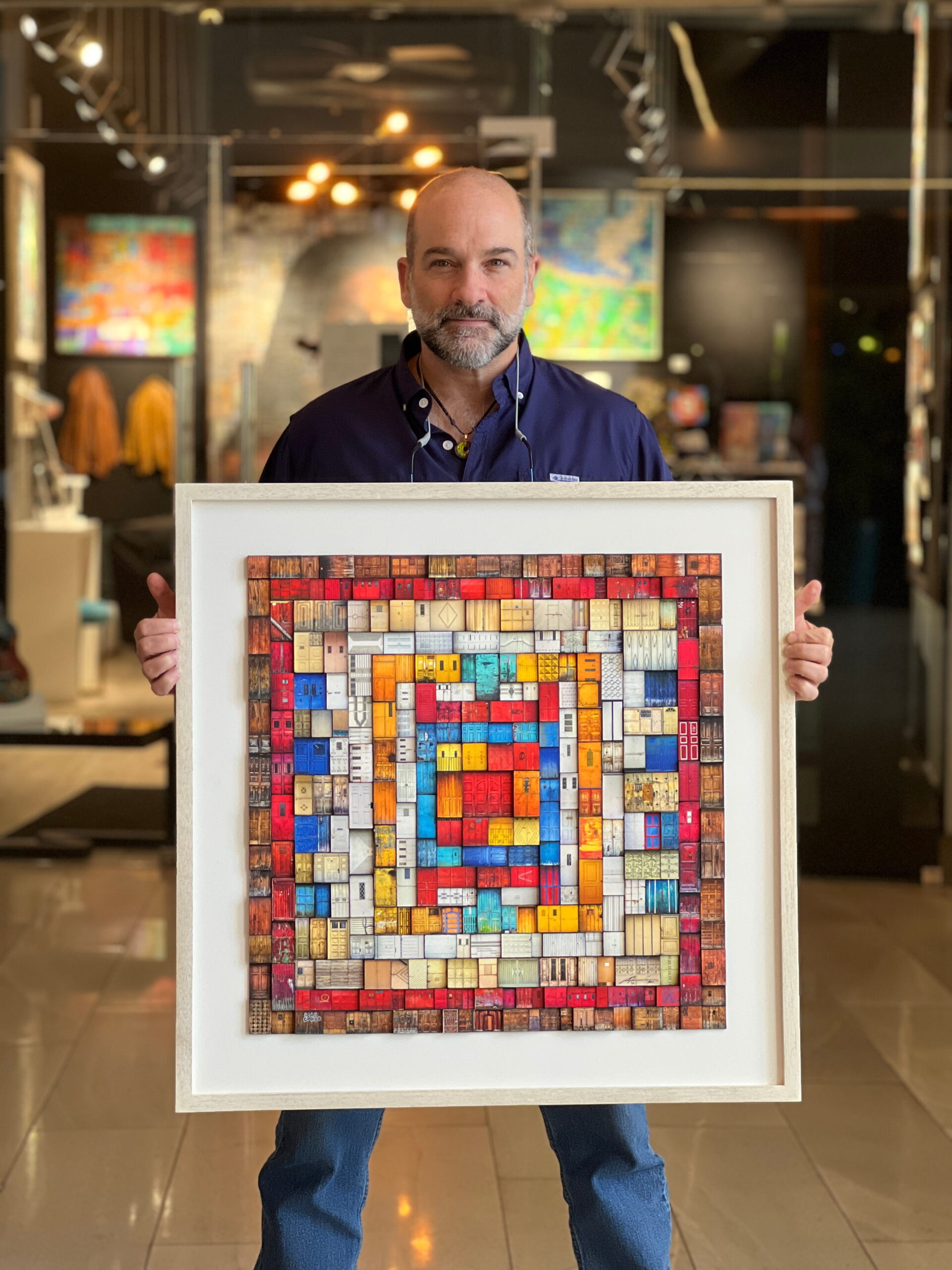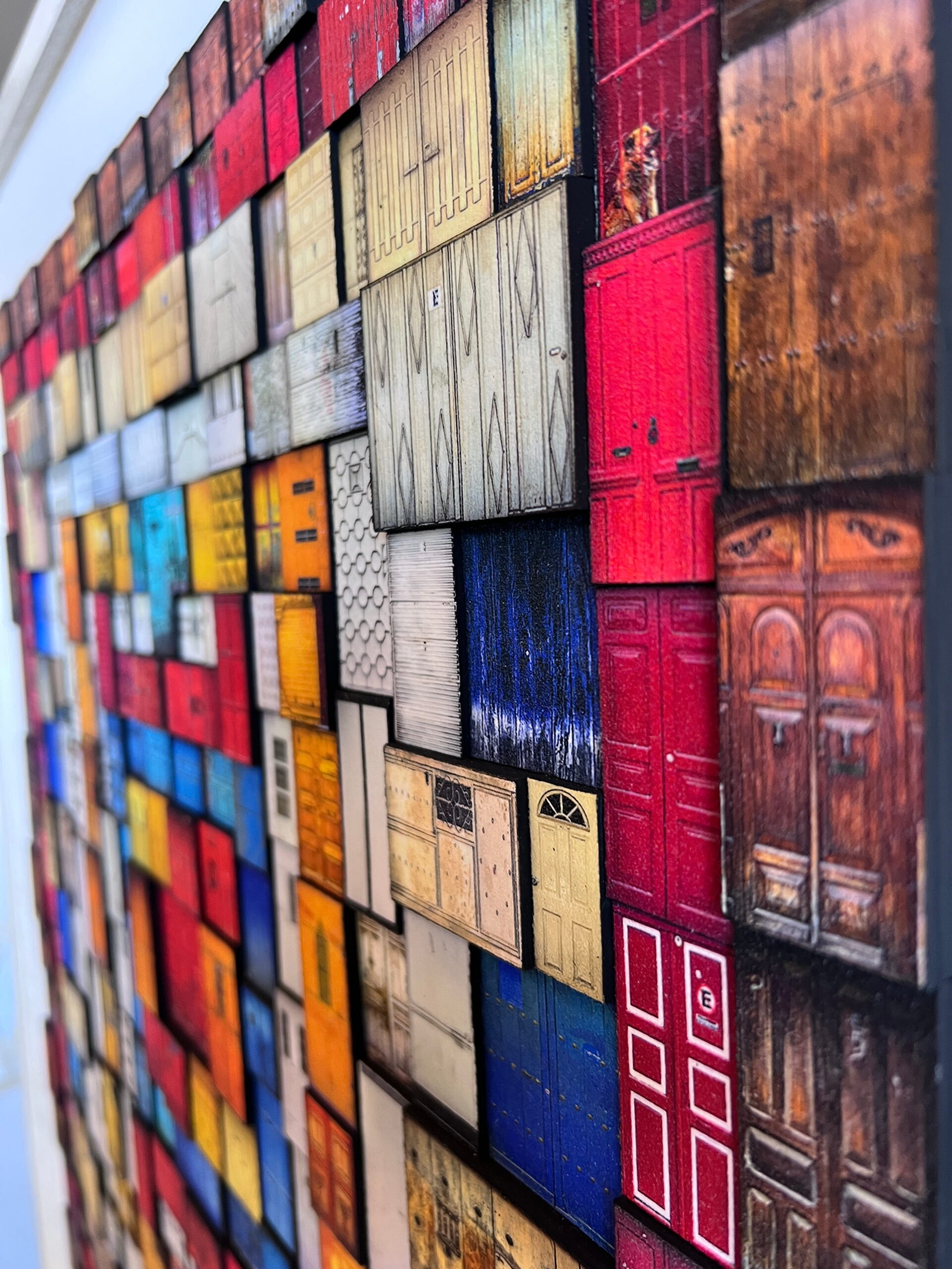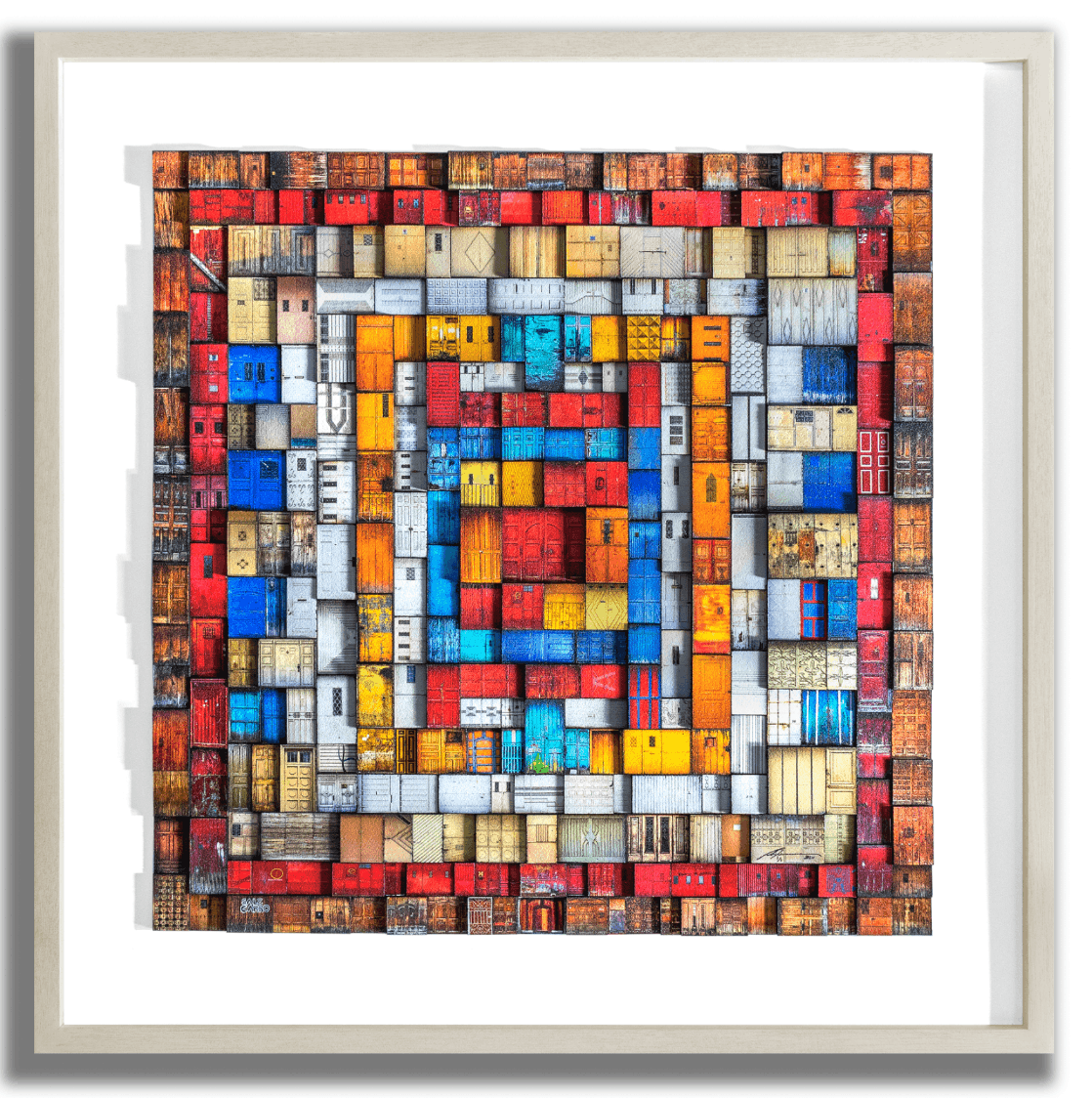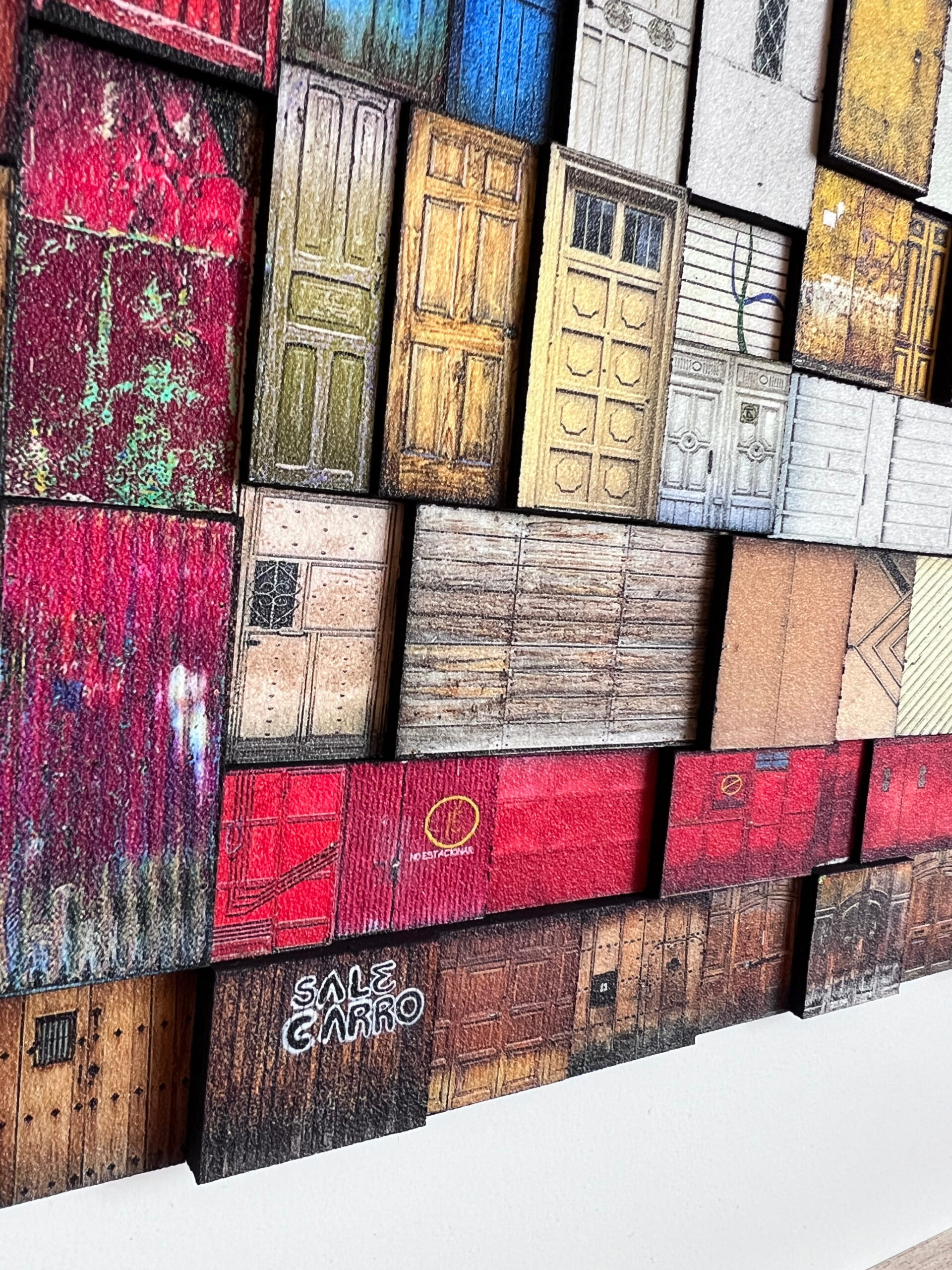 Huipil is a collage that pays tribute to and is inspired by the traditional indigenous blouses of Guatemala.  They are characterized by a wide range of very vibrant colors.  This collage is made up of 314 original door photographs and  all the doors are printed in fine art watercolor paper and have a chemical coating to protect and add texture to each door.  Its a highly textured artwork, as each door is placed at a different level.    It is a one-of-a-kind piece and it is undoubtedly a work of art that everyone who enters your home or space, will talk about.    It will definitely bring a lot of life and color to any space where you place it.   Its  dimensions are 30 x 30  inches  and it weighs 3.17 kgs. NOTE: It takes us between 2 to 4 weeks to have it delivered to the US.  (PLEASE NOTE THAT PRICES MAY VARY DEPENDING ON YOUR LOCATION OTHER THAN THE UNITED STATES.  If you live outside the United States, please kindly contact us before making a purchase so we can provide you with a price estimate).  Shipping to the US is included in the price.